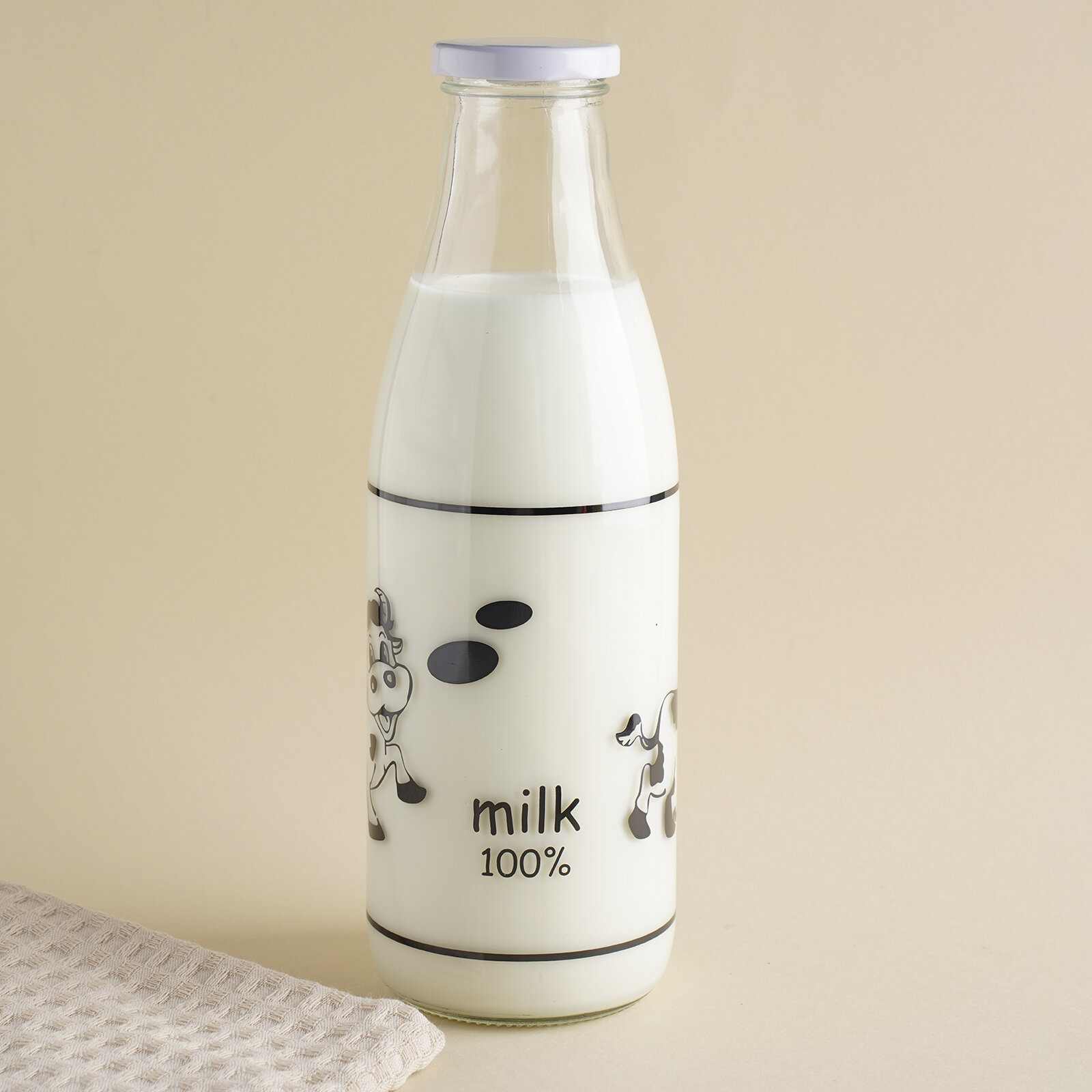 Купить Бутыль для молока Доляна «Коровушка», 1 л, 8,5×25 см, стекло