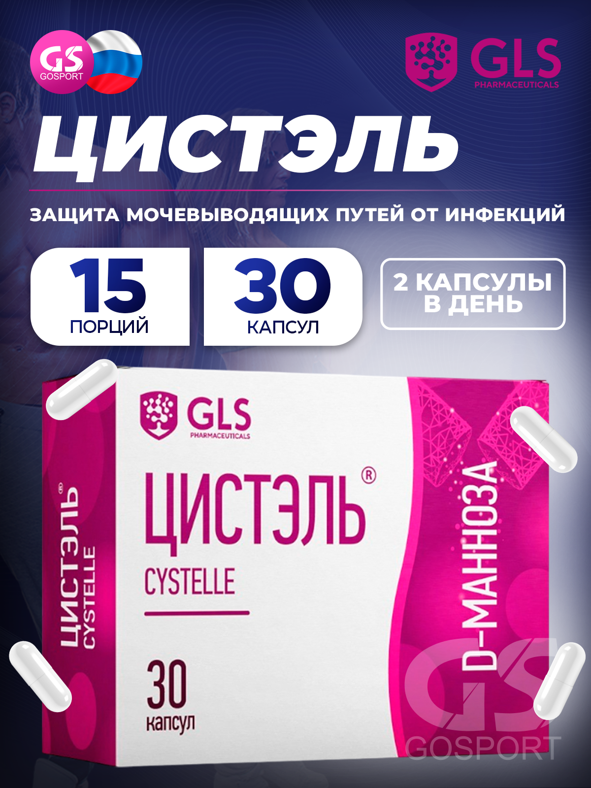 Цистэль GLS Pharmaceuticals средство для защиты мочевого пузыря при цистите Д манноза, 580 мг, 60 капсул