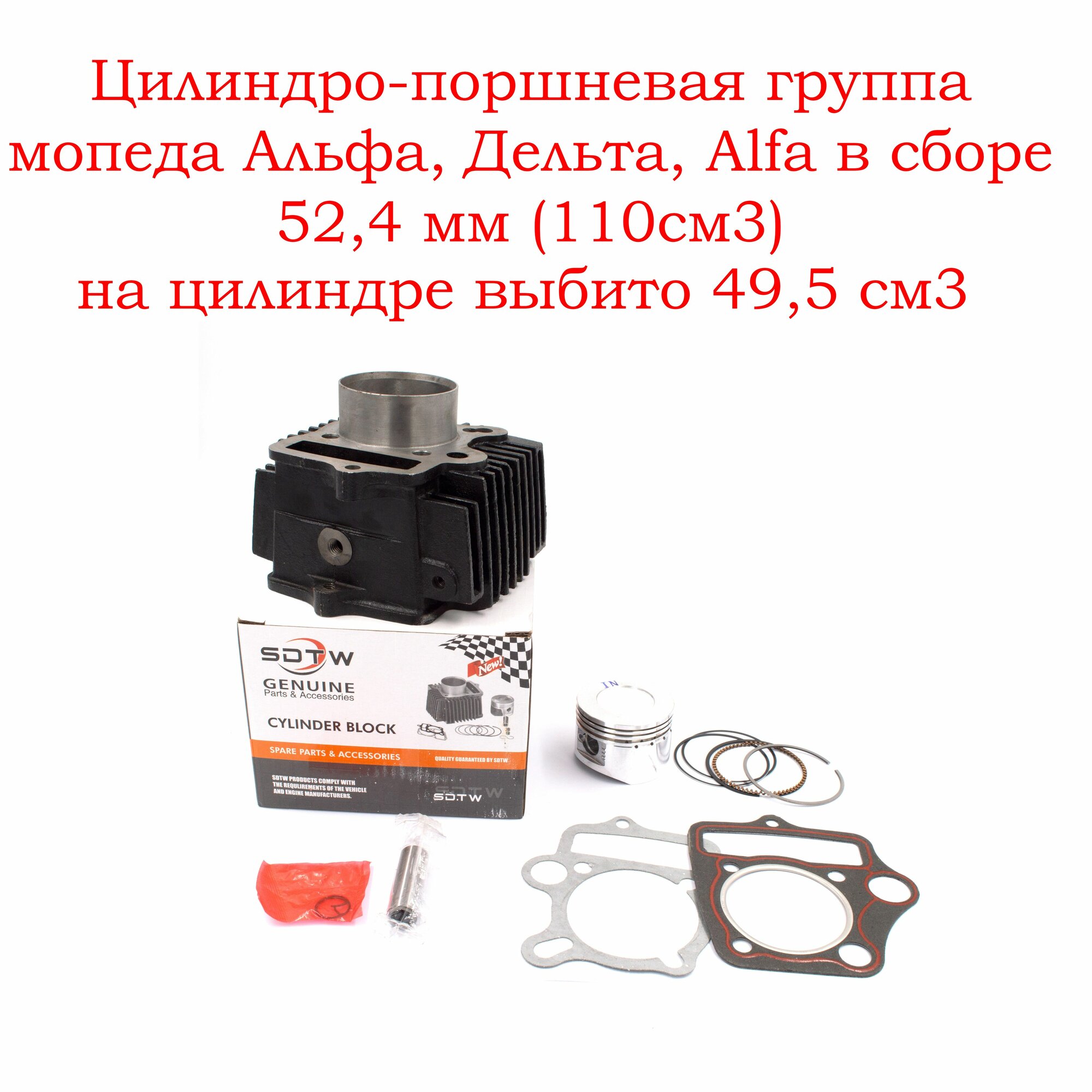 Купить Цилиндро-поршневая группа мопеда Альфа, Дельта, Alfa в сборе 52,4 мм (110см3) на цилиндре выбито 49,5 см3