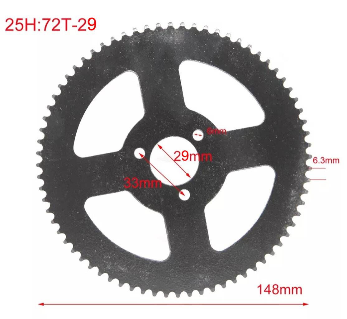Купить Звезда ведомая 72T 25H для детского электрического квадроцикла центральное отверстие 29 мм
