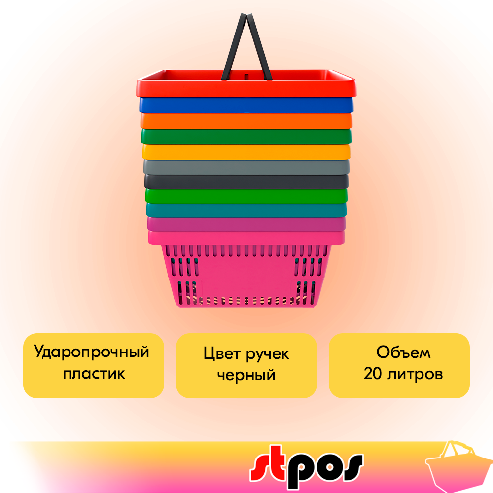 Купить Набор Корзин покупательских пластиковых ROCK с 2 черными ручками 20 л, усиленных,11 цветов