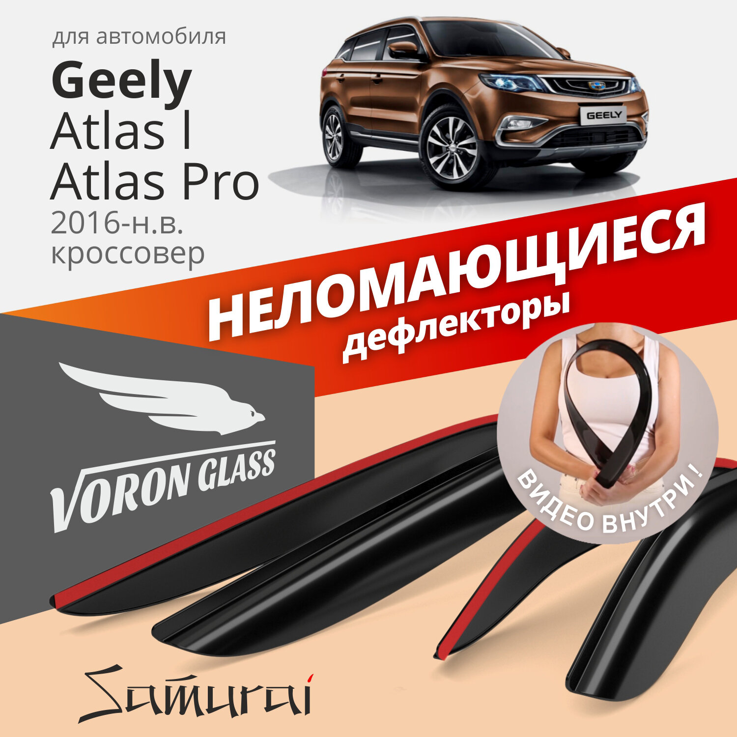 Дефлекторы окон неломающиеся VORON GLASS серия Samurai для Geely Atlas/ Atlas PRO 2016-н. в, Belgee X70 кроссовер, накладные 4 шт. интересное: