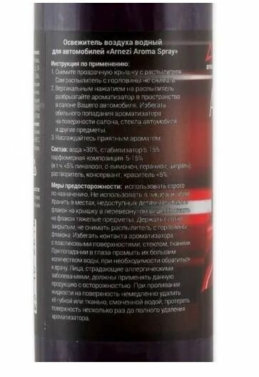 ARNEZI A1509041 Ароматизатор ARNEZI Aroma жидкий спрей Новая машина ARNEZI