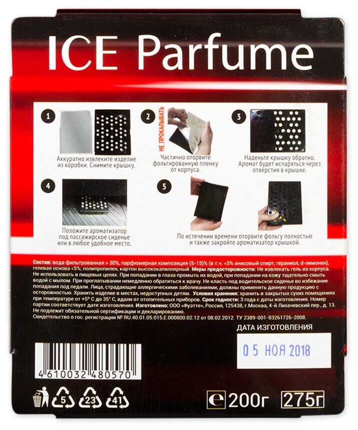 Ароматизатор для автомобиля под сиденье, пахучка в машину со вкусом Чёрный лёд
