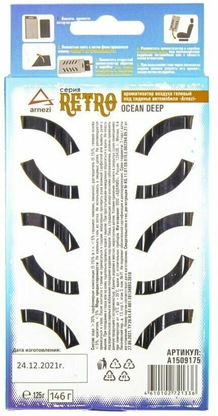 Купить ARNEZI A1509175 Ароматизатор под сиденье, гелевый Retro Ocean Deep 125г ARNEZI A1509175