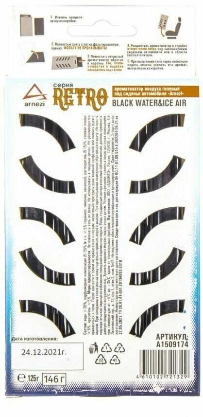 СохранитьАроматизатор под сиденье, гелевый Retro Black WaterIce Air 125г ARNEZI A1509174 интересное: