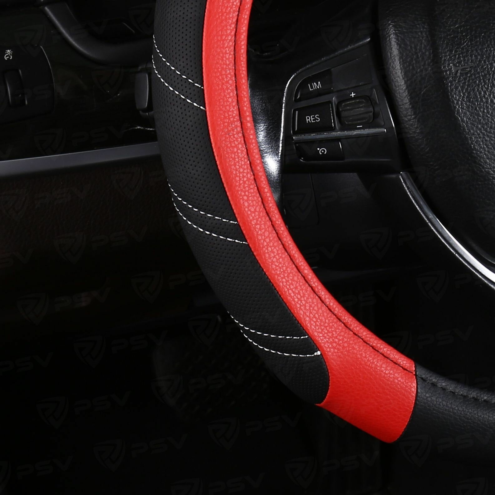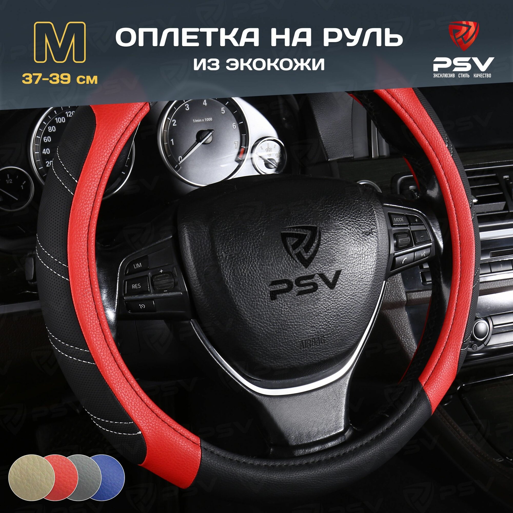 Оплетка чехол на руль PSV OVERLAY (Черно-Красный) M 37-39 см, экокожа, 136072