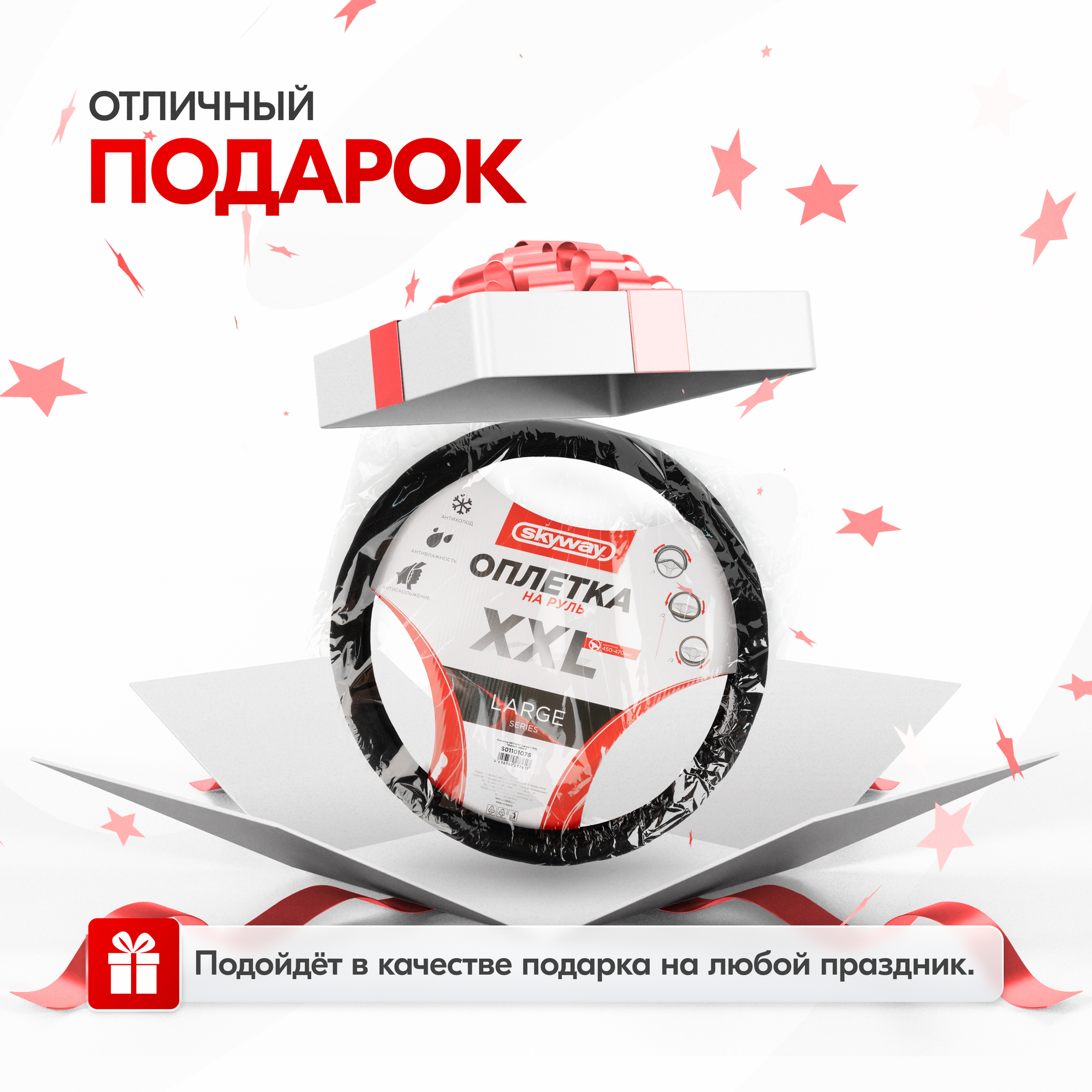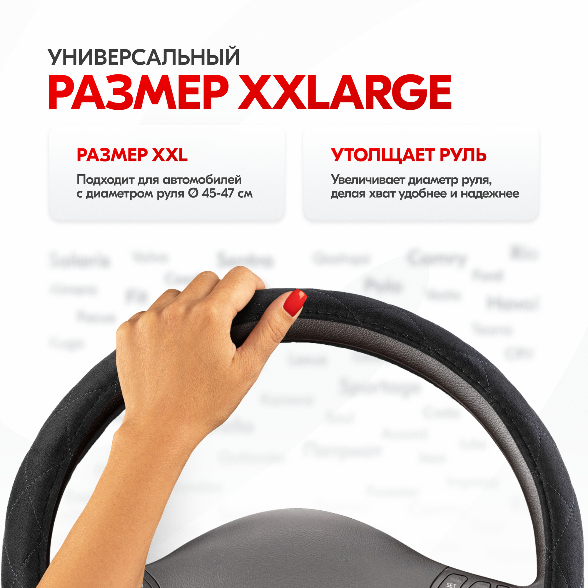 Оплетка на руль Large-1 SKYWAY 2XL (45-47) черный алькантара, S01101076 интересное: