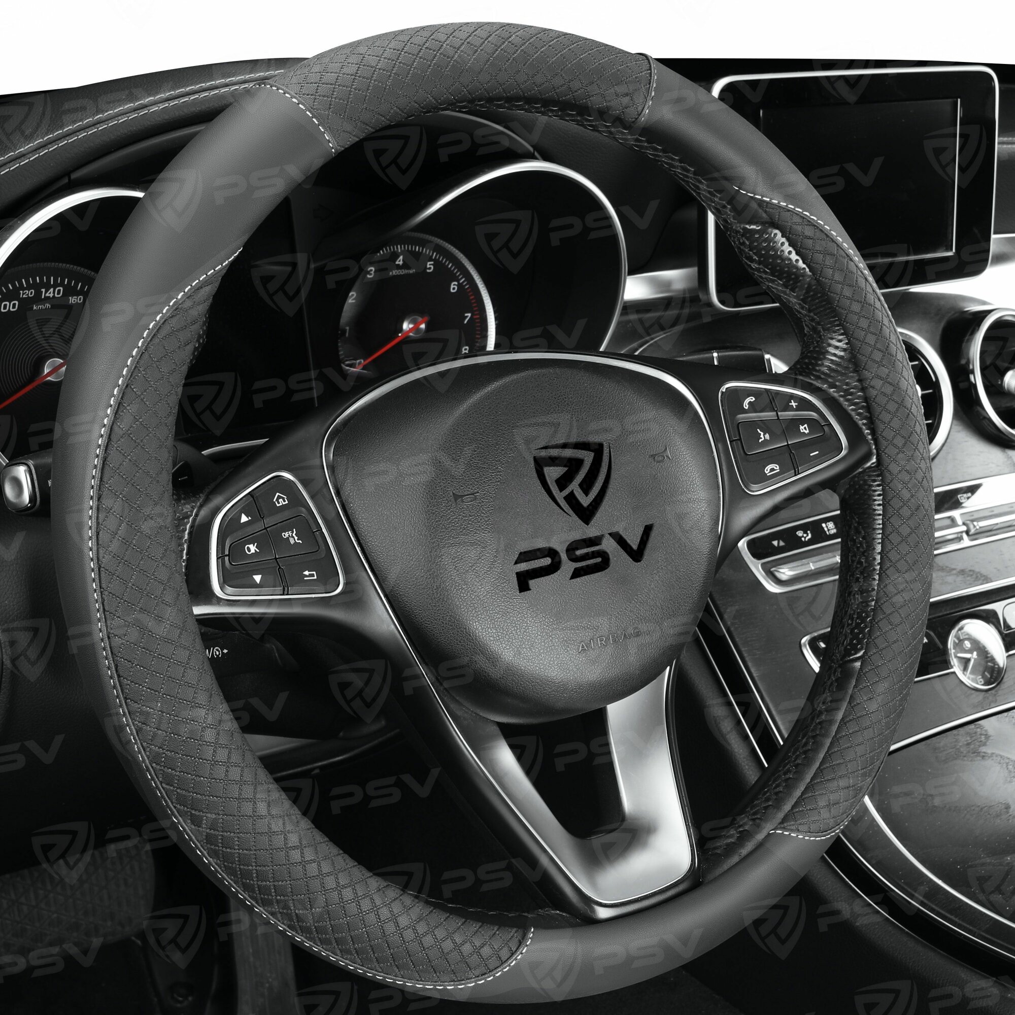 PSV 136825 Оплетка на руль "PSV" иск.кожа GREAT (Черный/Отстрочка серая) M