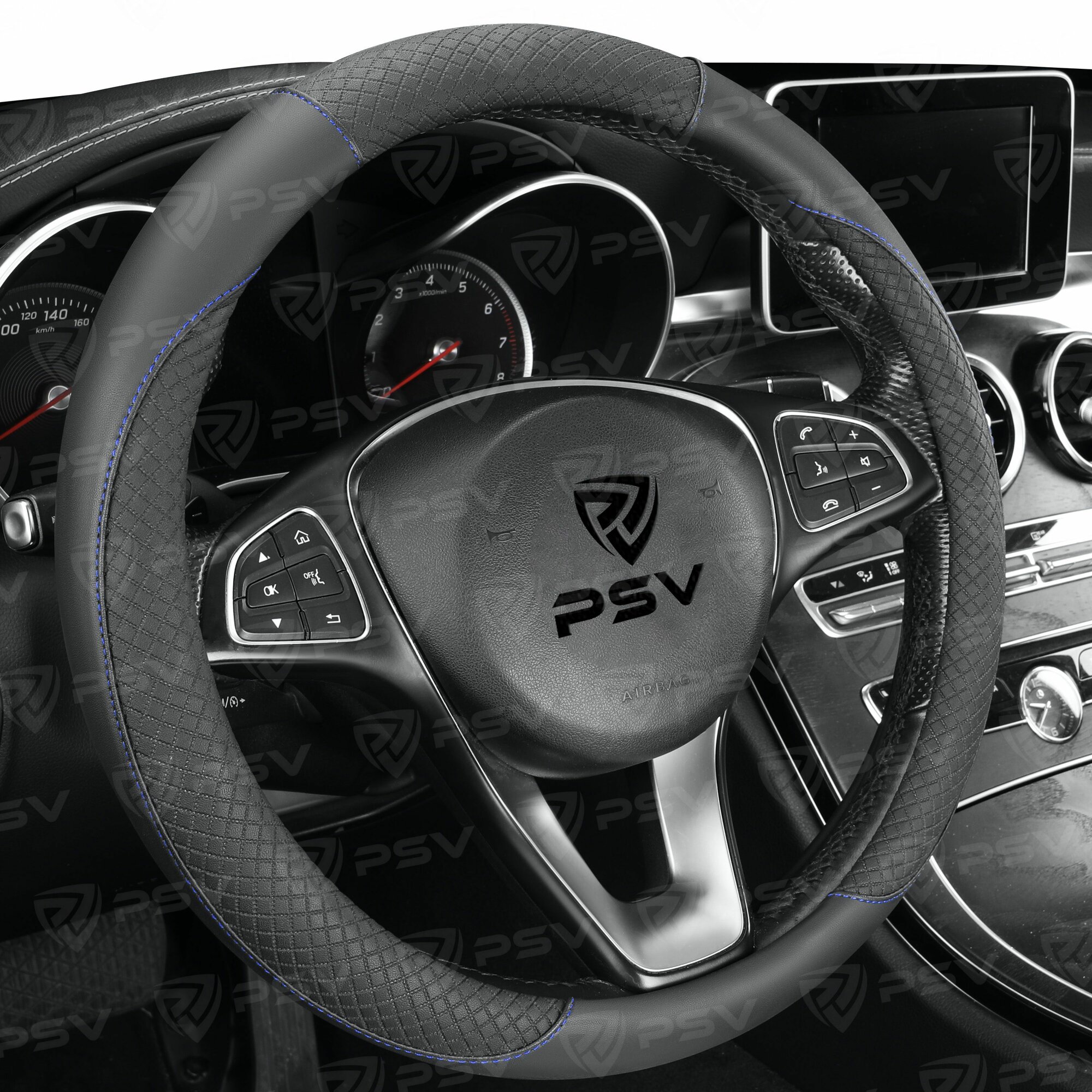 Оплетка чехол на руль PSV GREAT (Черный, строчка синяя) M 37-39 см, экокожа, 136827