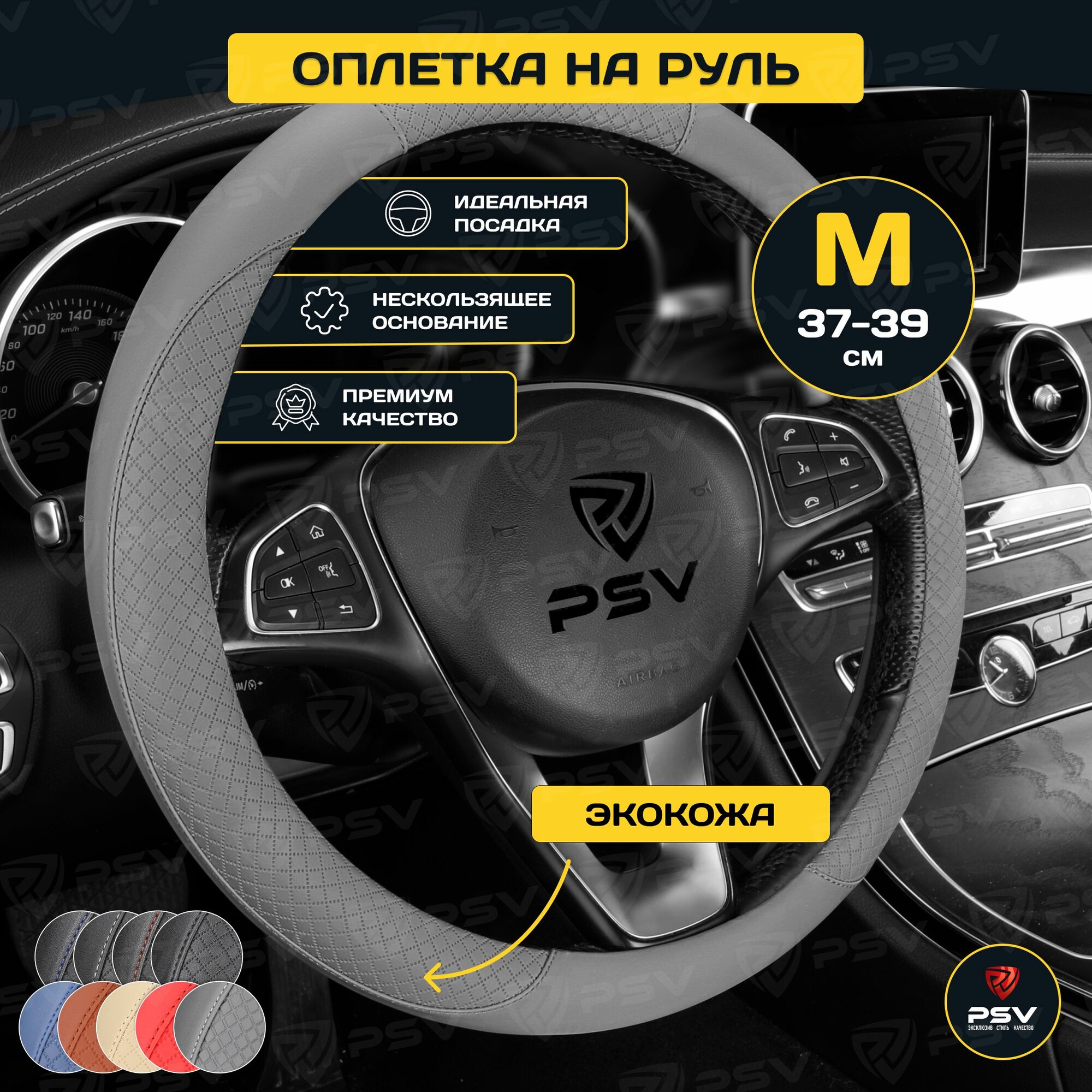 Оплетка руля M PSV Great экокожа серая PSV 136828 | цена за 1 шт