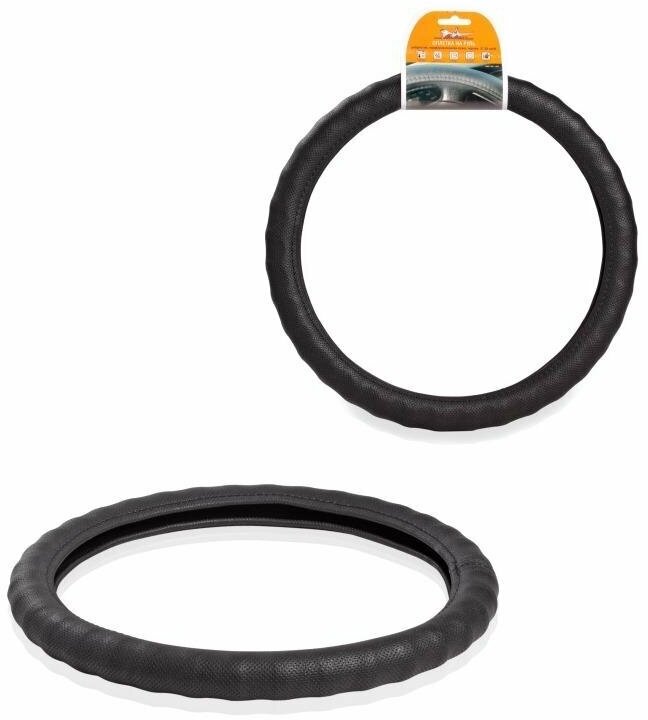Оплетка на руль M 38см кожа натур. перфор./ребристая черный (Airline)