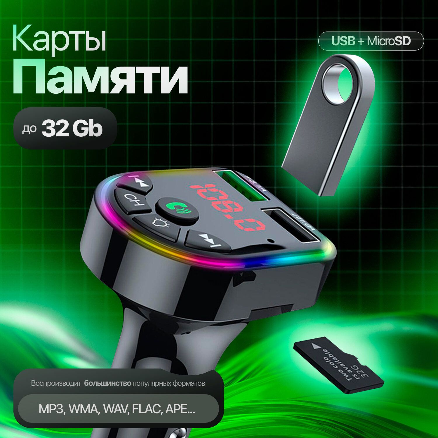 Орбита / TS-CAF120 FM-трансмиттер с bluetooth/микрофоном/ для автомобиля/ зарядник QC 3.0 для авто в прикуриватель
