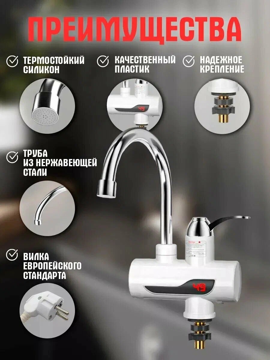 Водонагреватель проточный электрический с дисплеем / Кран нагреватель для горячей воды, белый интересное:
