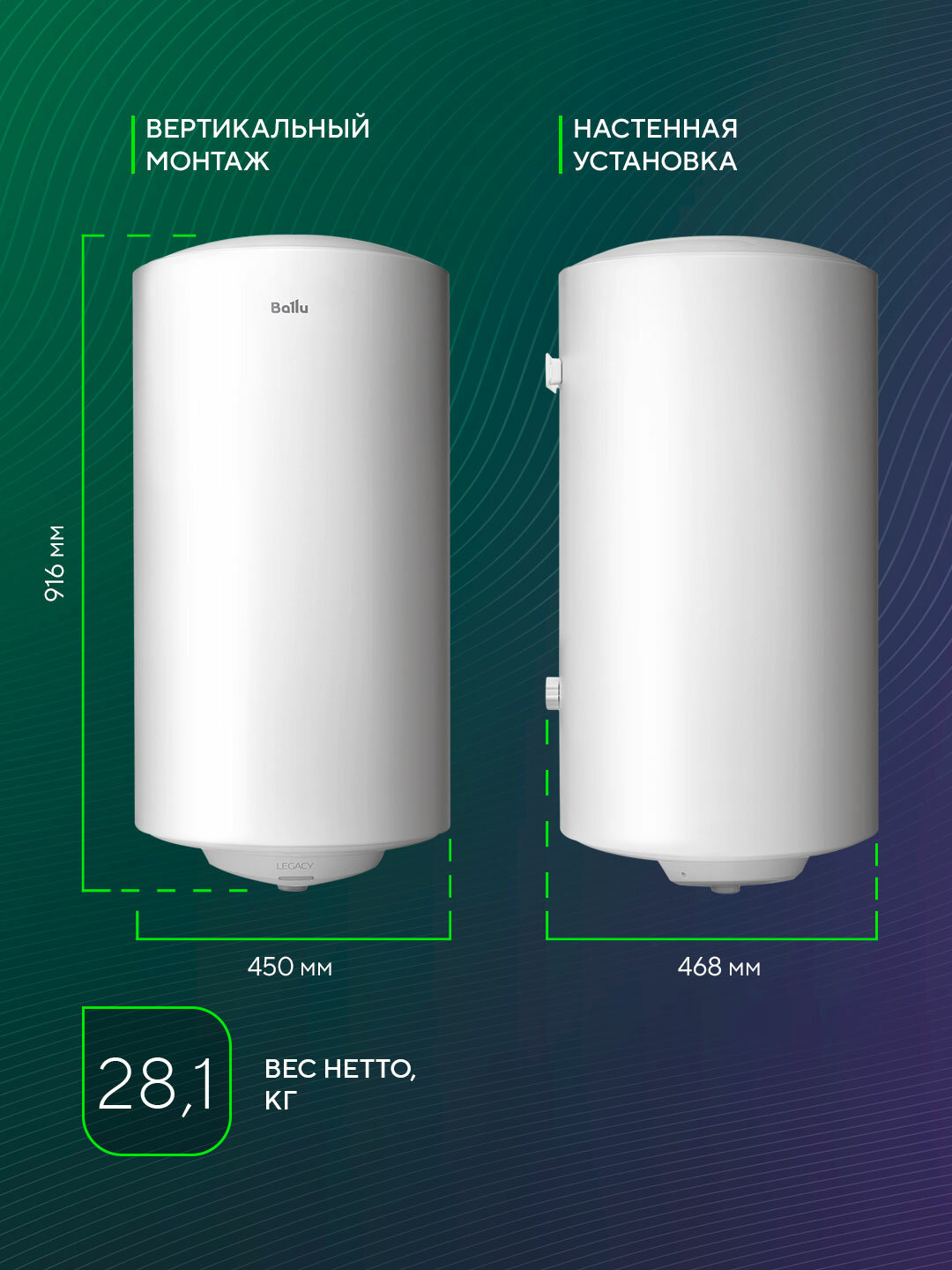 Купить Водонагреватель накопительный Ballu BWH/S 100 литров Legacy