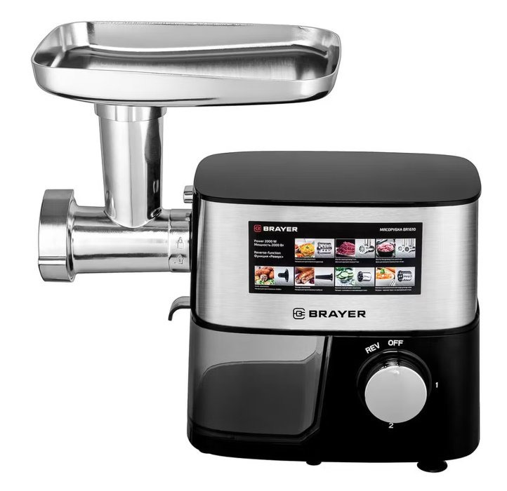 Мясорубка BRAYER BR1610, 2000 Вт, 3 диска, овощерезка, реверс, 2 кг/мин