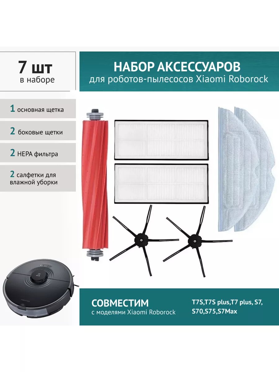 Комплект фильтров и щеток для робот-пылесоса Xiaomi Roborock T7S,T7S plus,T7 plus, S7, S70,S75,S7Max, черный