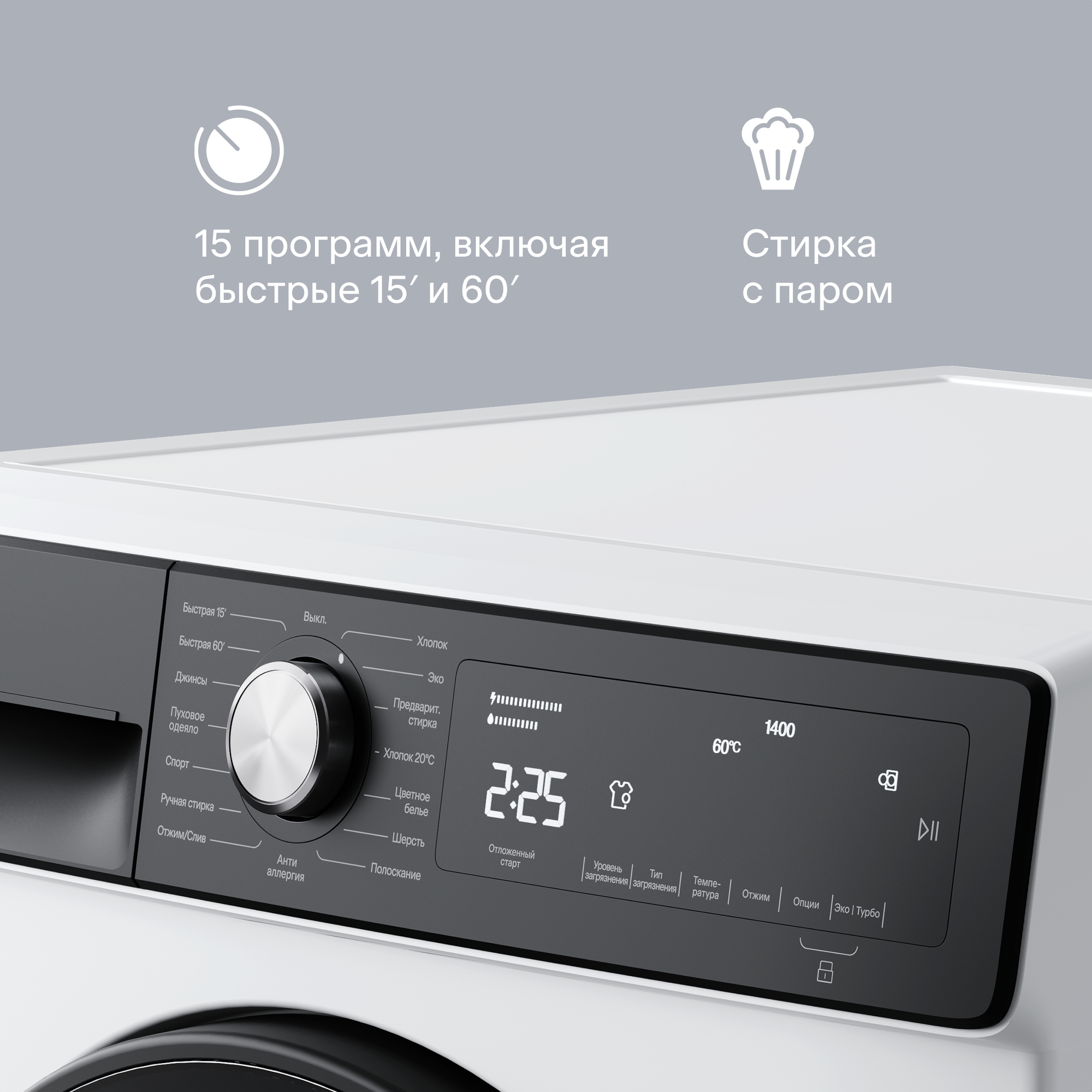 Стиральная машина с инвертором и паром Tuvio WFF18HW21, белый интересное: