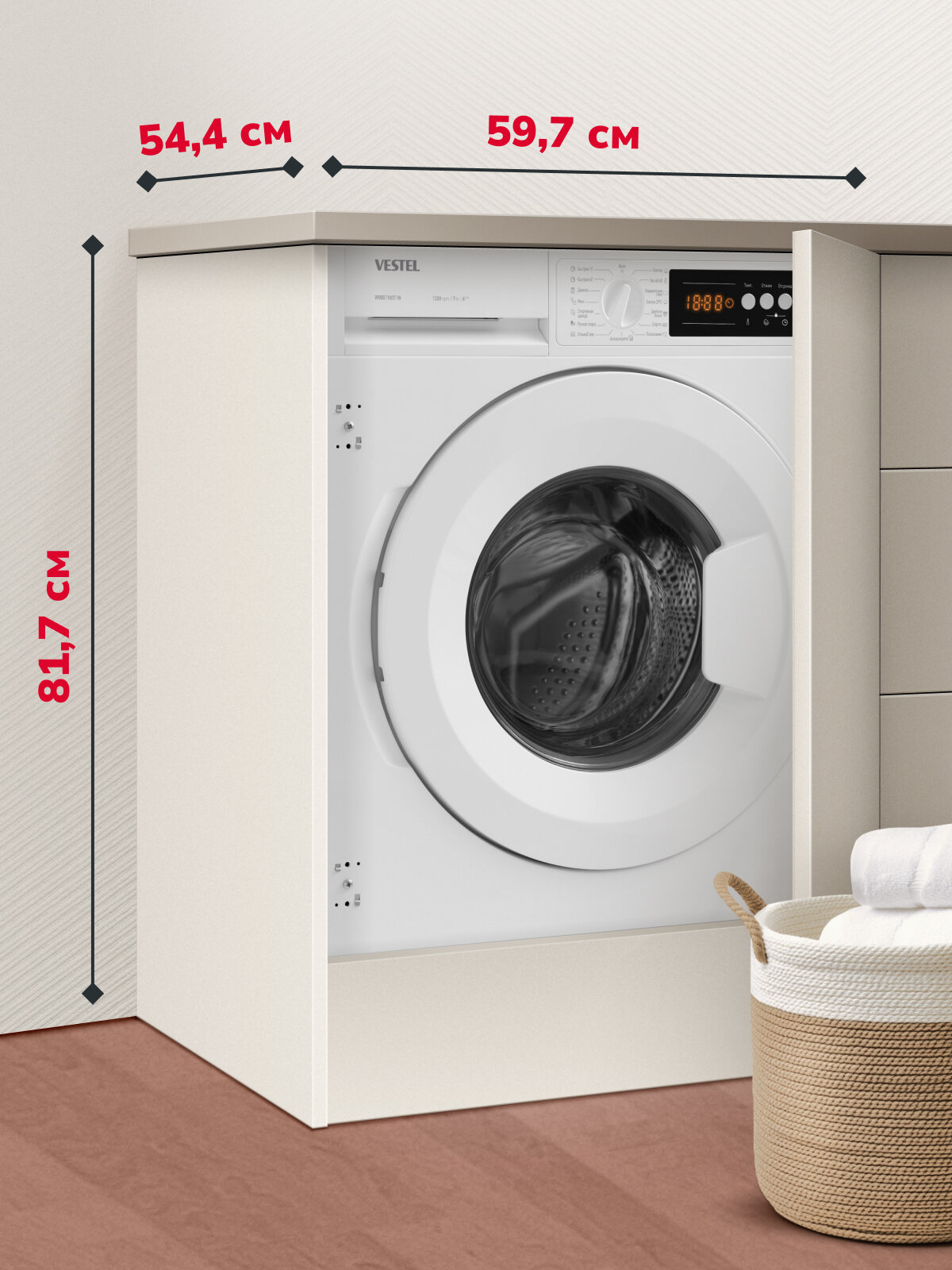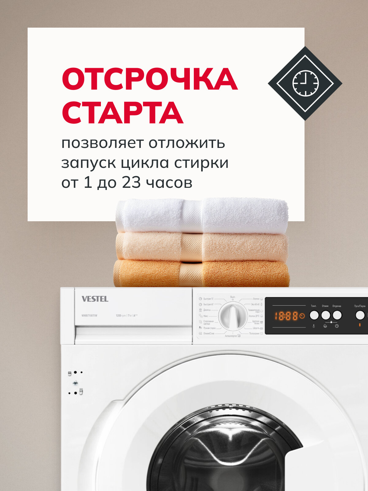 Стиральная машина Vestel WMBI7100T1W встраиваемая, 15 программ стирки, максимальная скорость отжима 1200 об/мин, белая интересное: