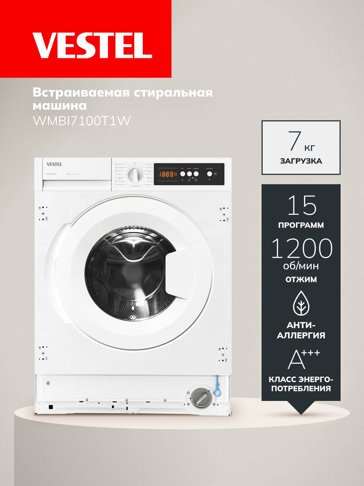 Ниже Вы можете прочитать отзывы на Стиральная машина Vestel WMBI7100T1W встраиваемая, 15 программ стирки, максимальная скорость отжима 1200 об/мин, белая, ознакомится с подробными характеристиками, посмотреть интересные обзоры и фотографии на Стиральная машина Vestel WMBI7100T1W встраиваемая, 15 программ стирки, максимальная скорость отжима 1200 об/мин, белая.