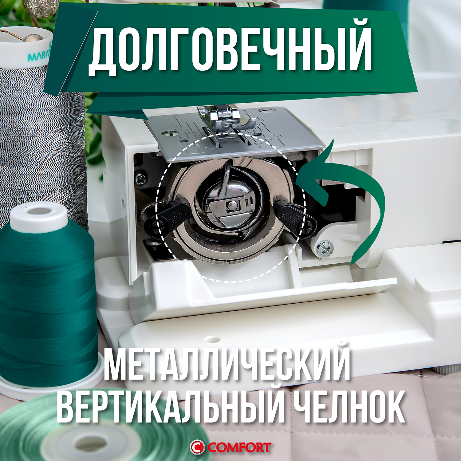 Швейная машина Comfort 1080, 24 операции, петля полуавтомат, нитевдеватель, мощный двигатель 100Вт