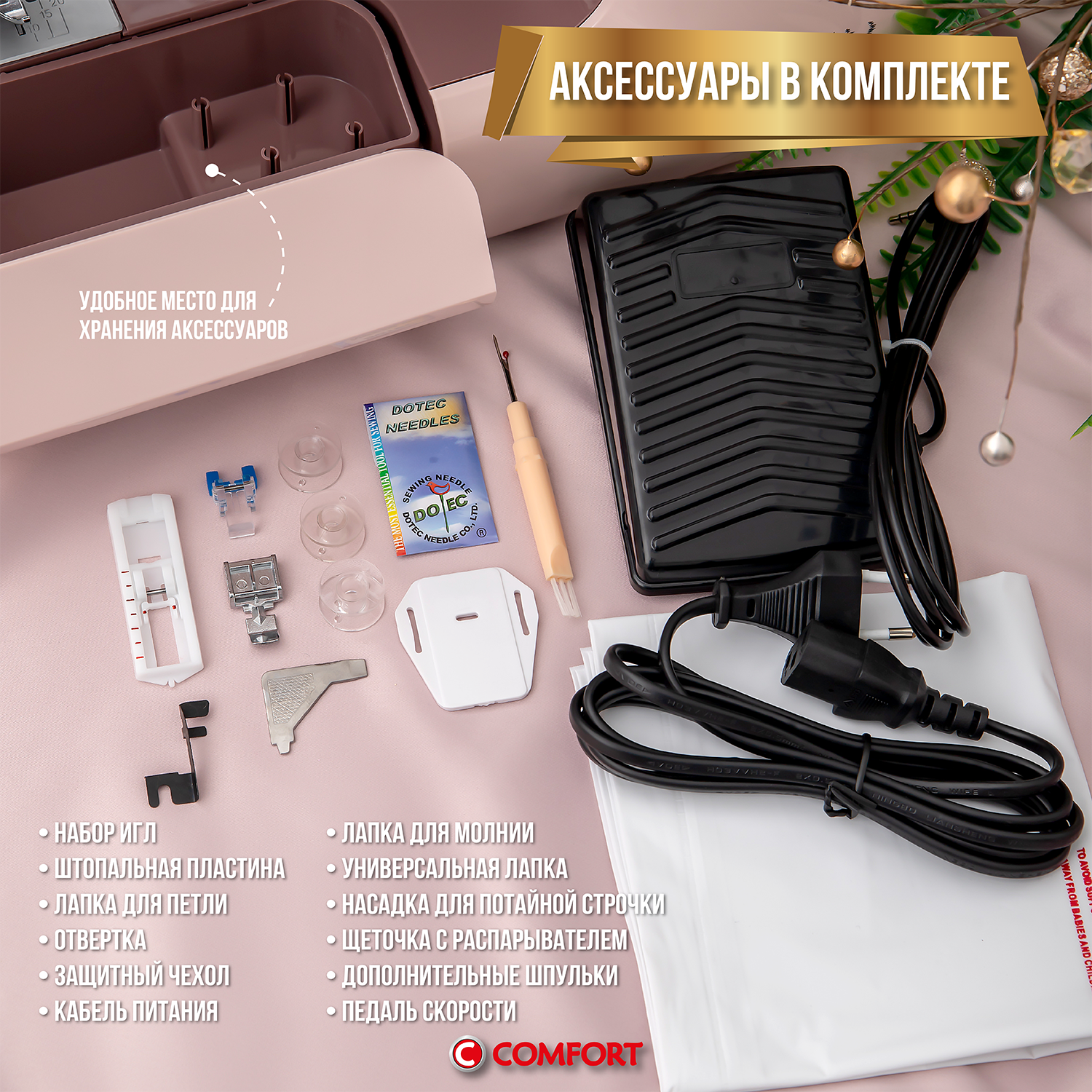 Швейная машина Comfort 1070, 24 операции, петля полуавтомат, нитевдеватель, мощный двигатель 100 Вт