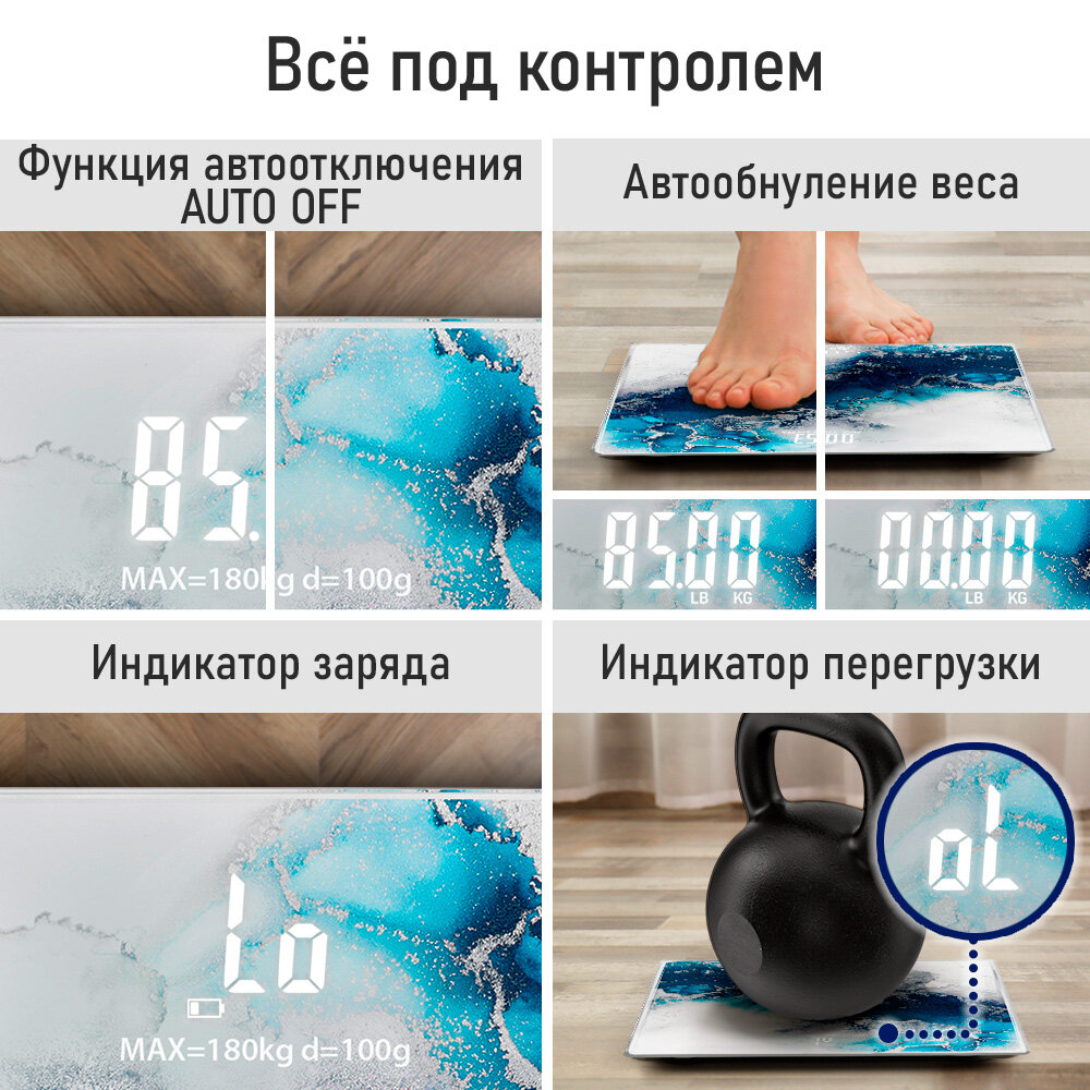 Весы напольные STINGRAY ST-SC5002A бело-синий мрамор интересное: