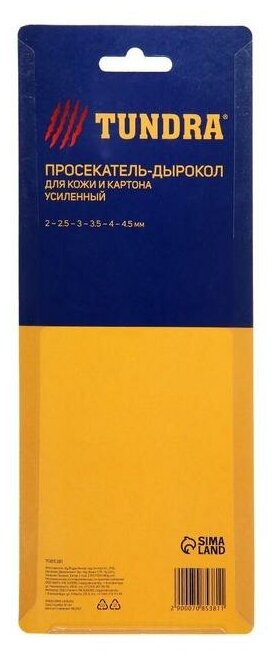 Просекатель дырокол для кожи и картона тундра, усиленный, 2-2.5-3-3.5-4-4.5 мм, 235 мм 7085381
