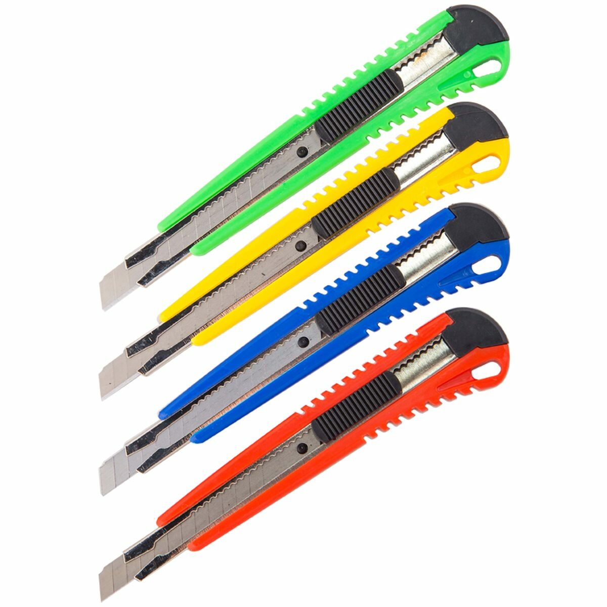 Нож канцелярский 9мм OfficeSpace, усиленный, с фиксатором, металл. направляющие, ассорти, европодвес