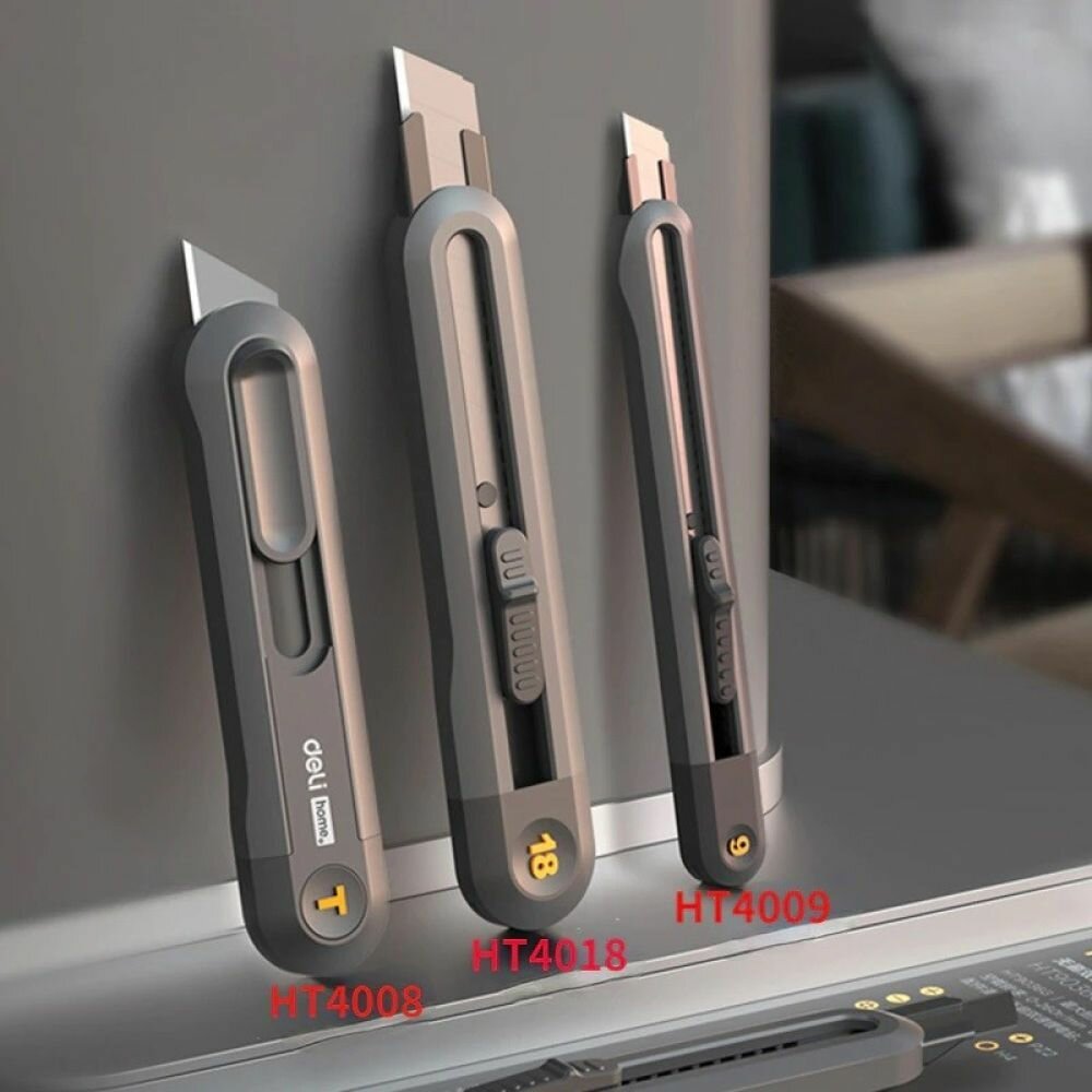 Технический нож "Home Series" Deli HT4009 Ширина лезвия 9мм. Эксклюзивный дизайн. Корпус из высококачественного софттач пластика, черный интересное: