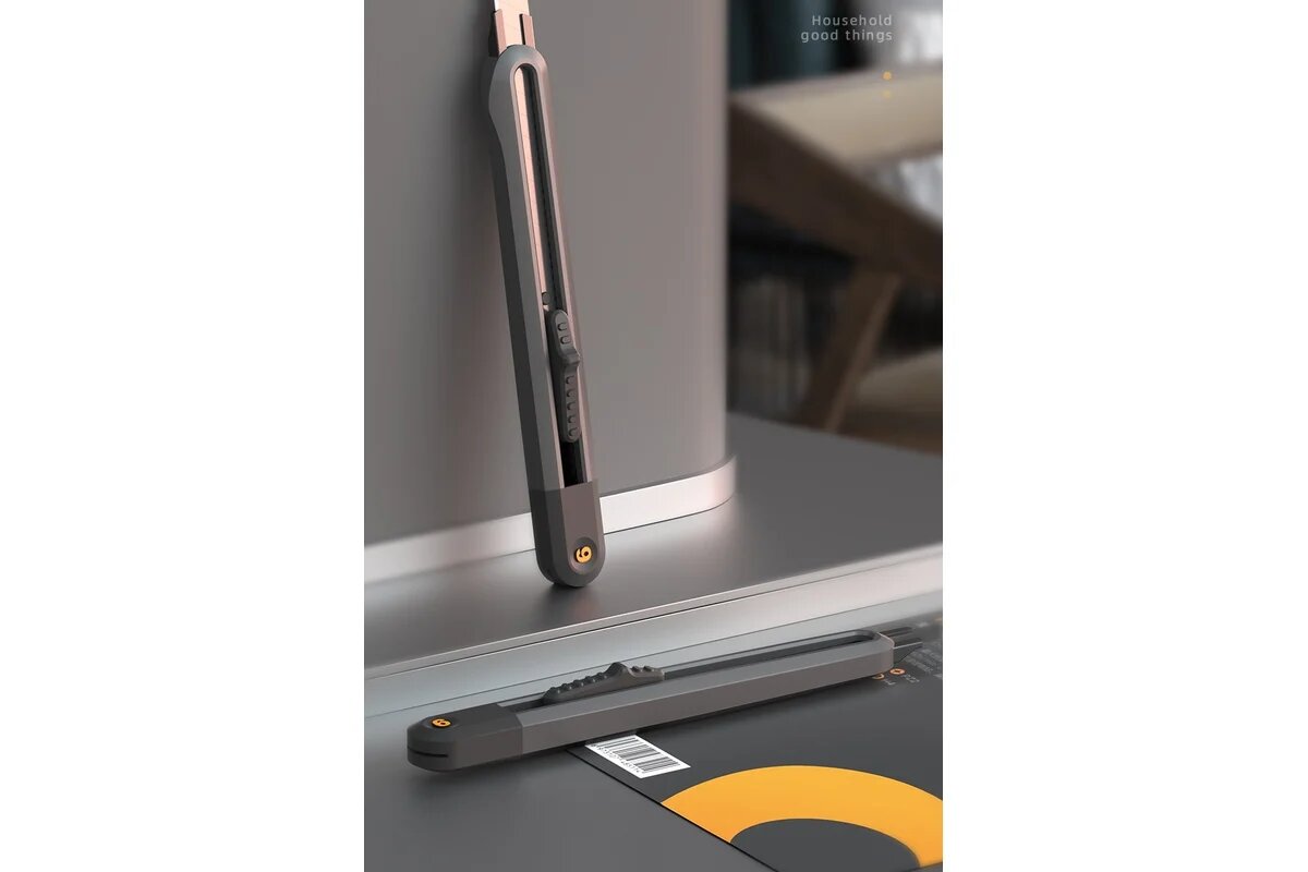 Технический нож "Home Series Gray" Deli HT4009C (сегментированное черное лезвие 9мм, эксклюзивный дизайн, корпус из софттач пластика)