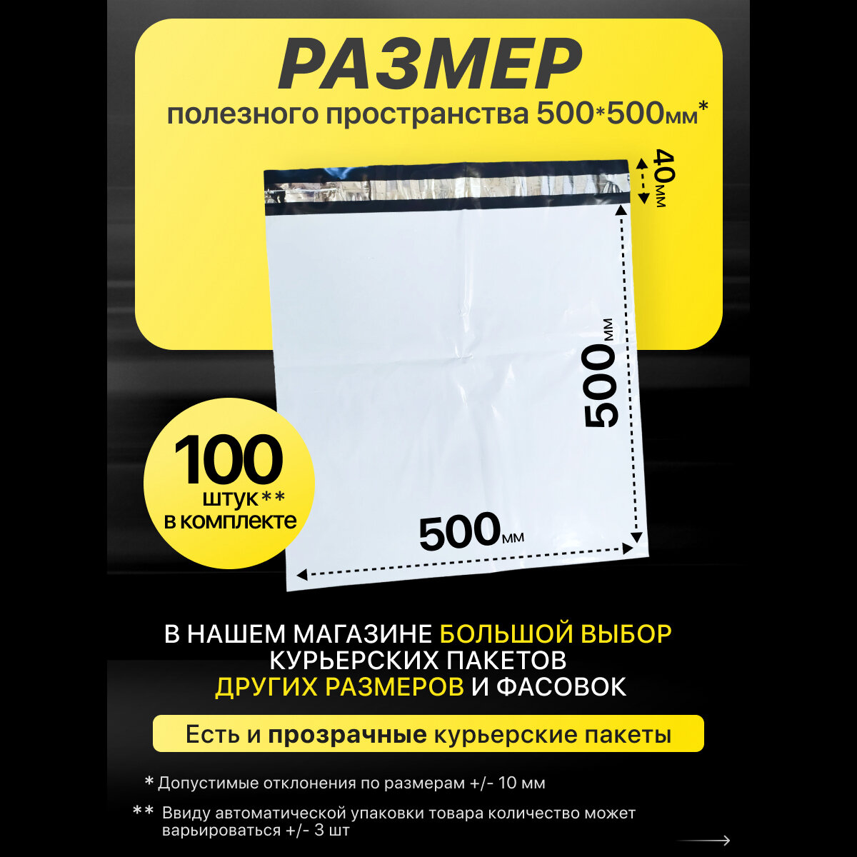 Курьер-пакет 500х500+40мм (50 мкм) / Без кармана / 100 штук