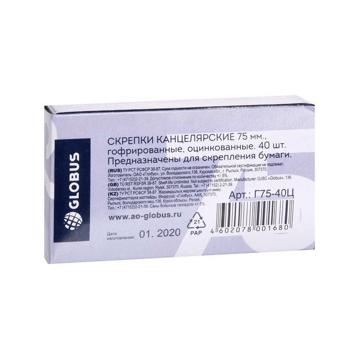 Купить Globus Скрепки Globus 75мм 40шт оцинкованные овальные гофированные