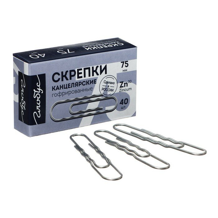 Скрепки большие 75 мм, оцинкованные, гофрированные, 40 шт., в картонной коробке, GLOBUS, Г75-40Ц, Г 75-40 Ц