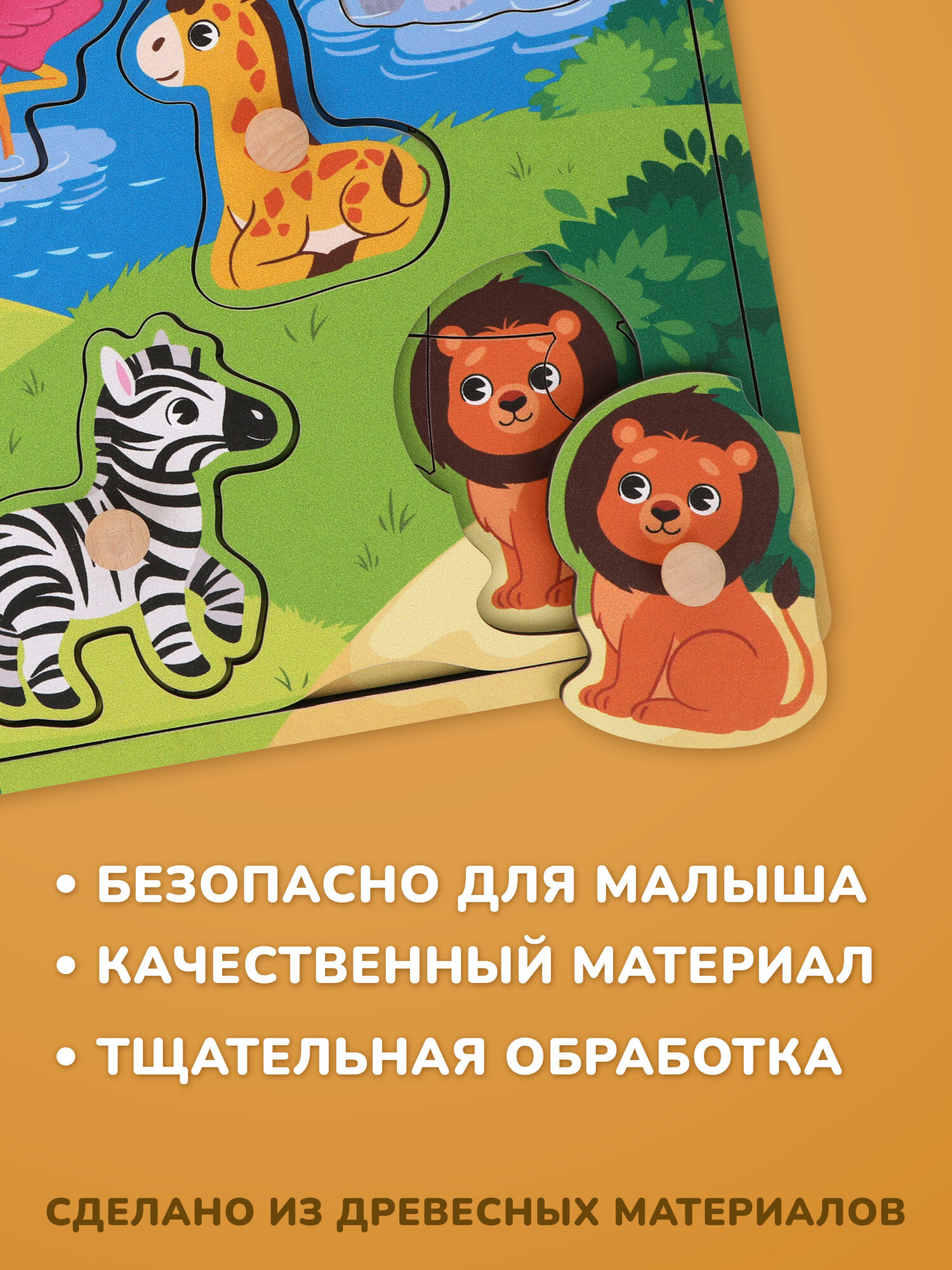 Развивающая деревянная игрушка вкладыши пазлы для малышей Джунгли Mapacha
