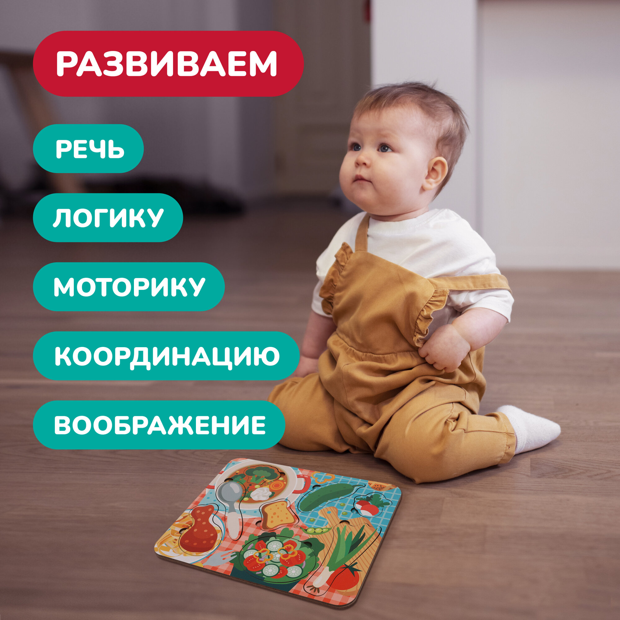 Купить Вкладыши деревянные для малышей, сортер для малышей Готовим обед Mapacha
