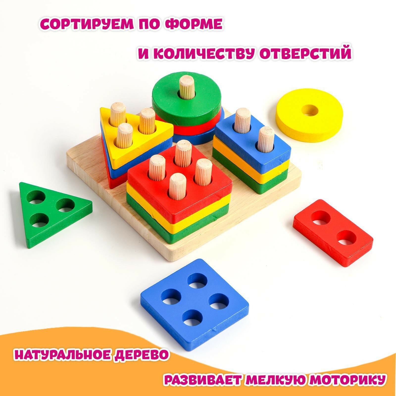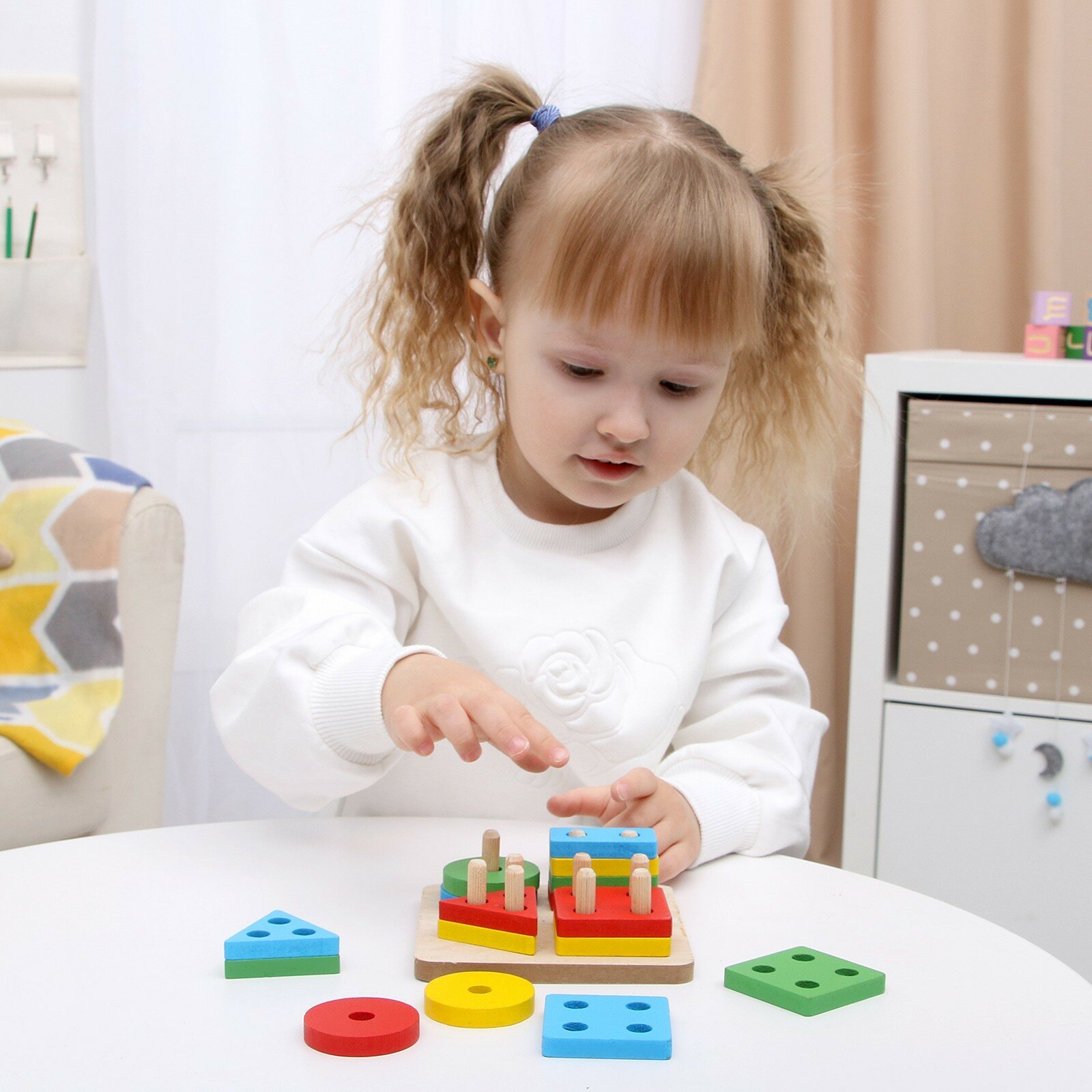 Детская развивающая пирамидка "Собери сам" 11,5х11,5 см, 16 деталей, ЛАС играс
