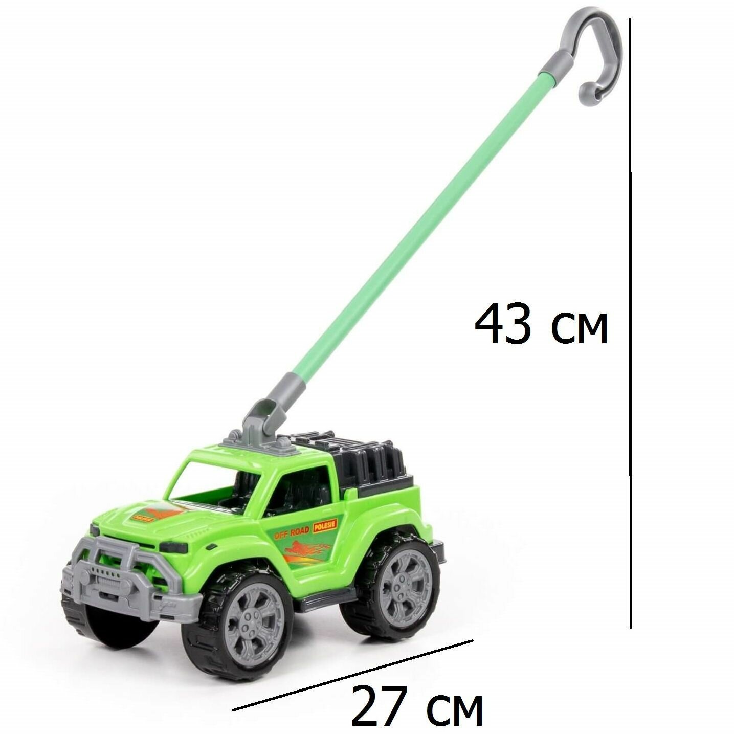 Игрушка-каталка с ручкой (высота хвата 43 см) машинка джип (салатовый) / Полесье интересное: