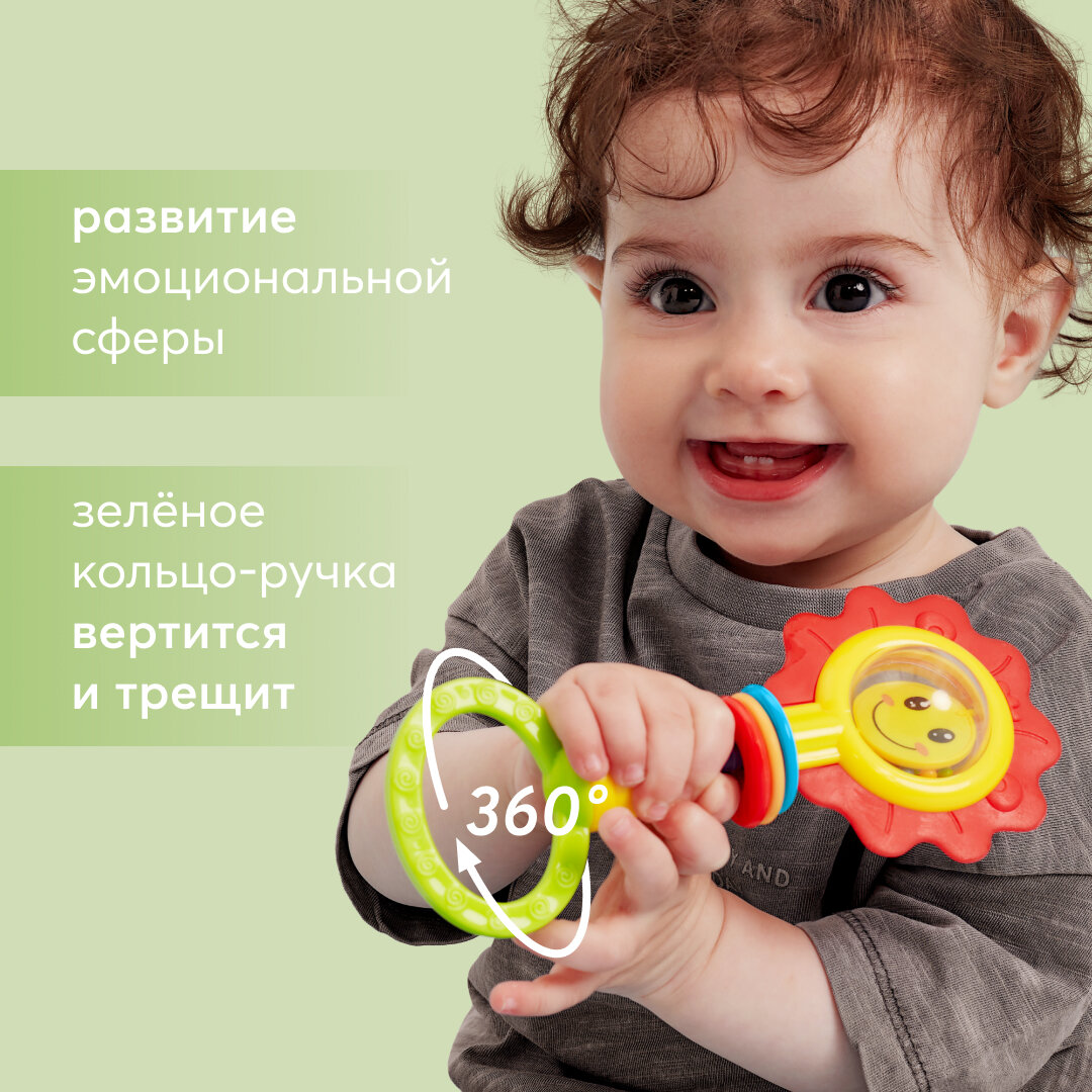 Отличная игрушка и прорезыватель.крутиться внутри,и трещит.ручка,супер ,и она не маленькиа,рекомендую