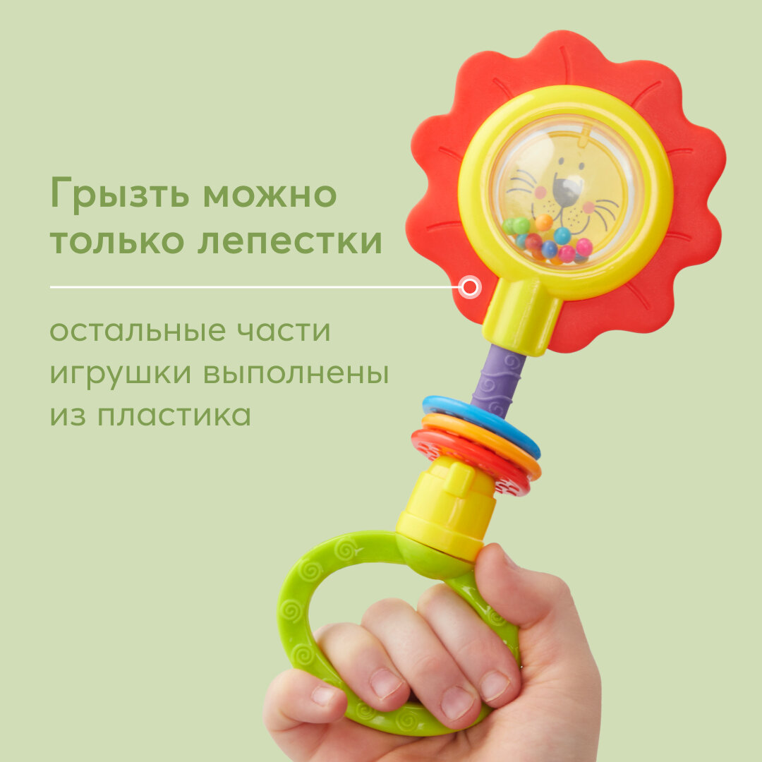 330370, Погремушка "FLOWER TWIST", красный с желтым цветок, салатовая ручка интересное: