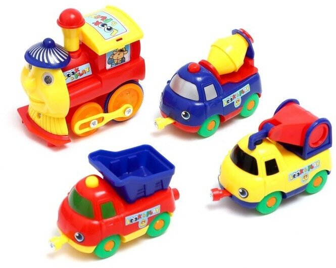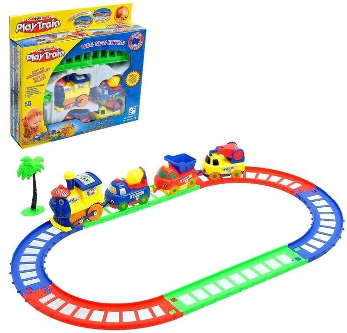 Купить Железная дорога «Весёлый паровозик», с машинками, магнитная сцепка, работает от батареек