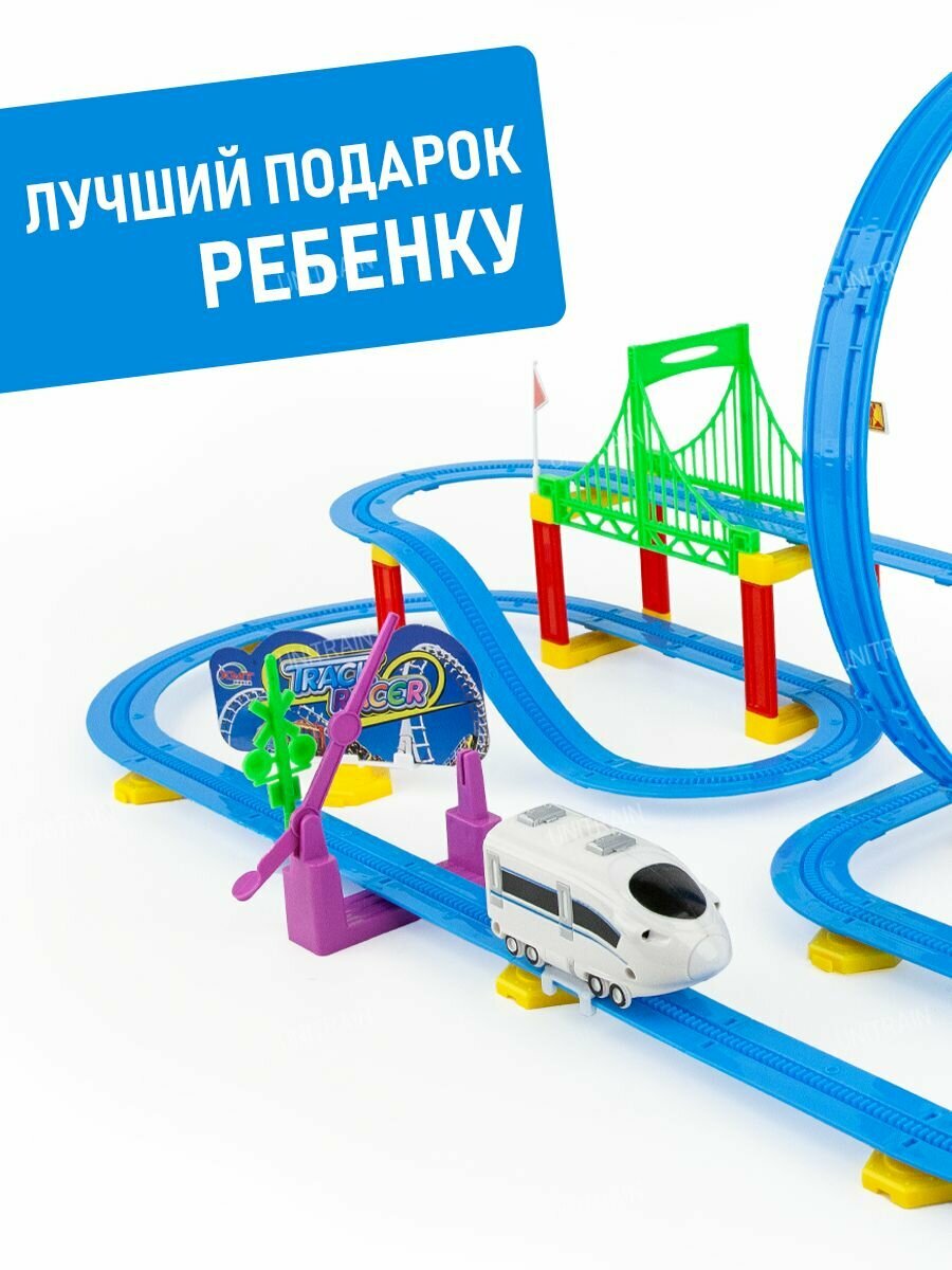 Купить Железная дорога детская, с электропоездом, на батарейках, в коробке, 84 детали