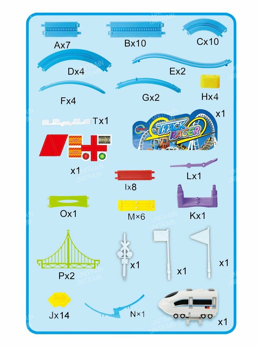 | Комплектация | электропоезд / 83 детали для сборки рельс |