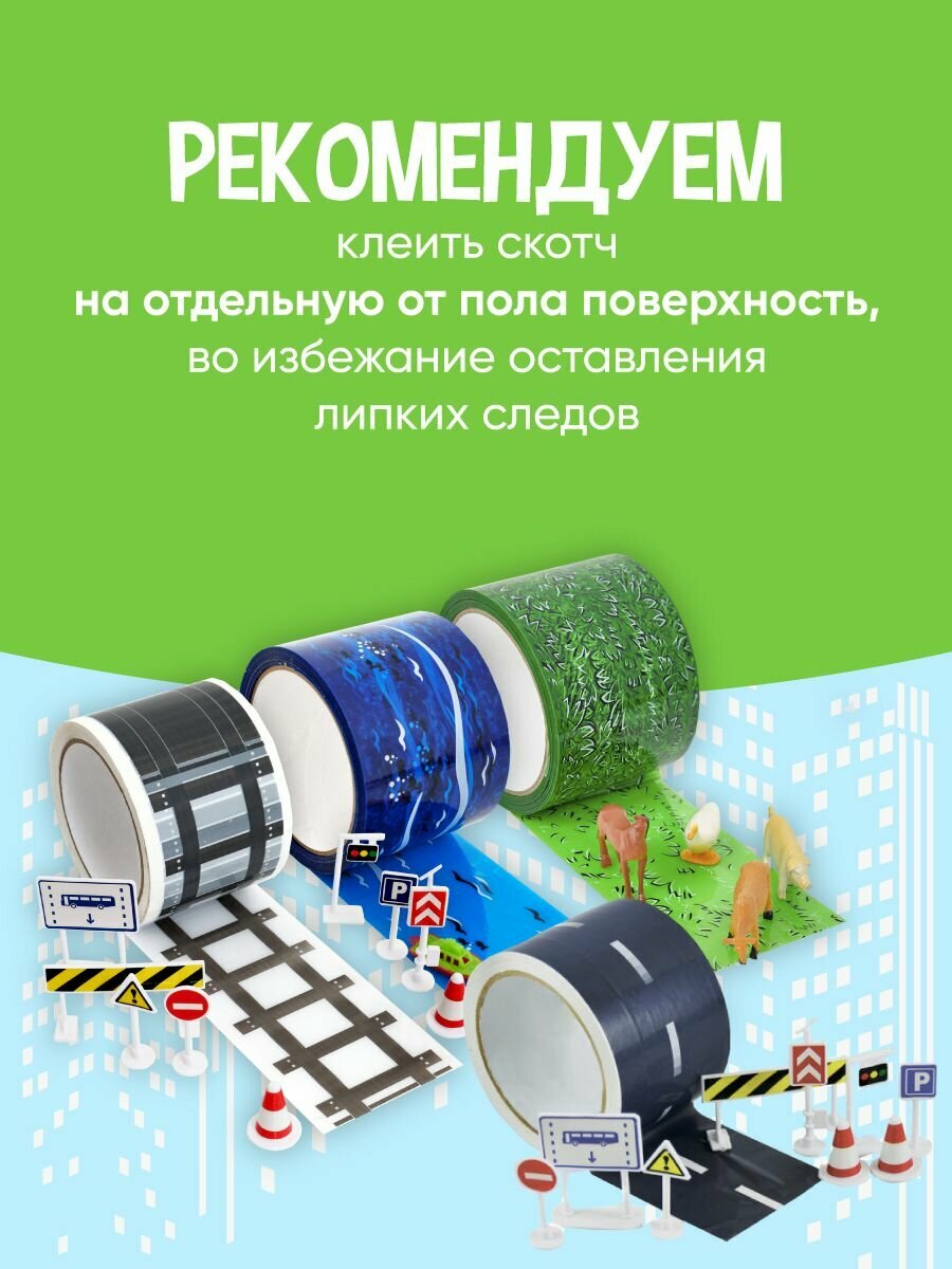 Детский набор игровой скотч железная дорога 72мм х 50 м / Дорожные знаки