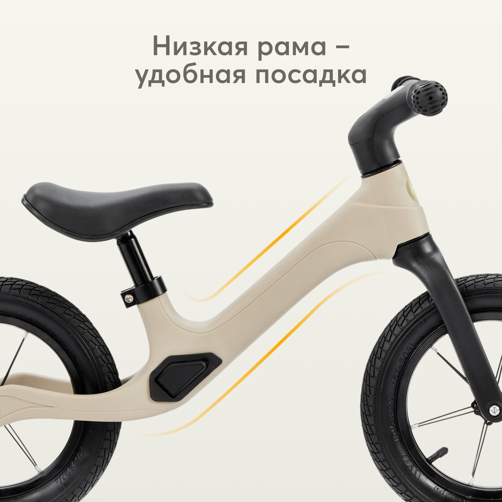 Сохранить50032, Беговел детский Speedy от Happy Baby, от 2 лет, на рост 90-115 см, надувные колеса, двухколесный, песочный интересное: