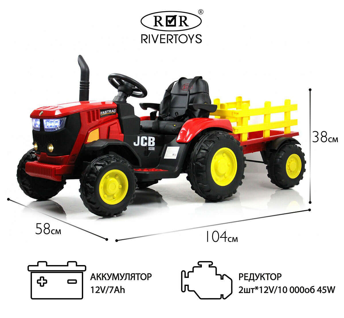 СохранитьДетский электромобиль-трактор RiverToys O555OO Красный интересное: