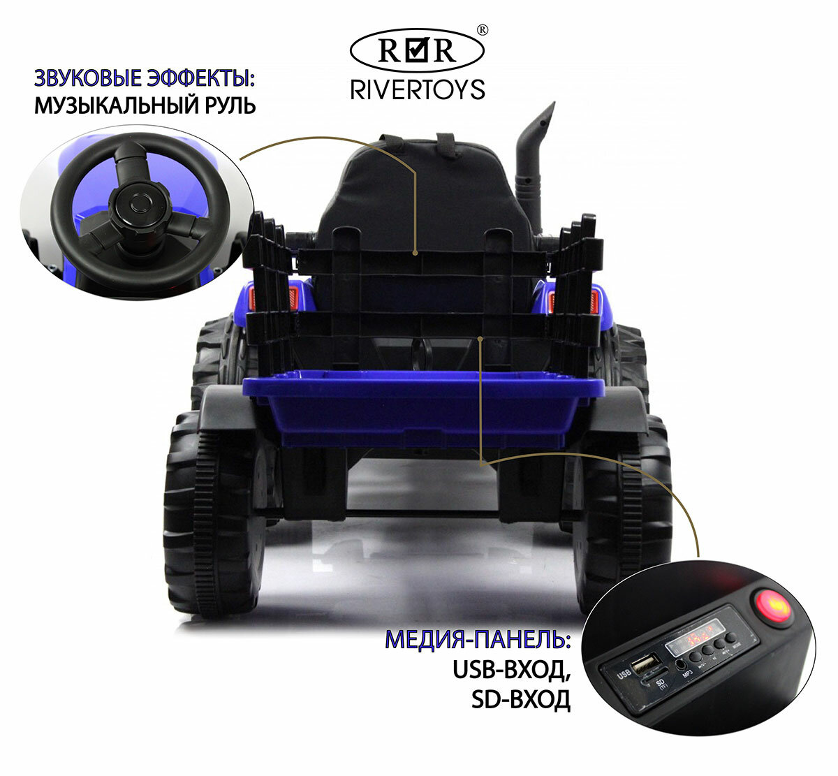 СохранитьДетский электромобиль-трактор RiverToys O555OO Синий интересное: