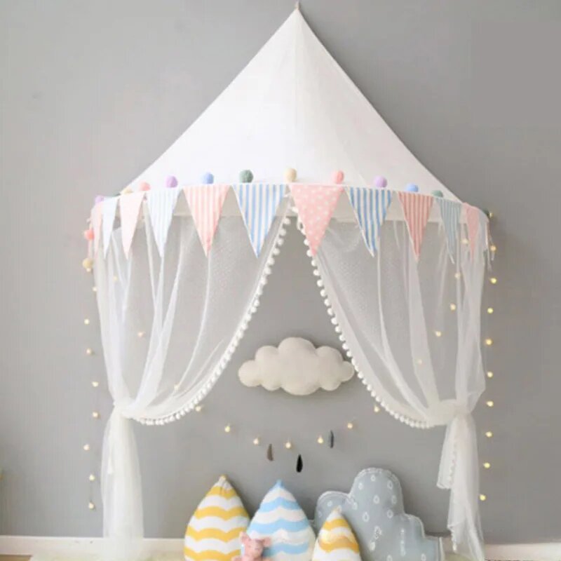 Детский игровой домик, яркие палатки, хлопковая складная палатка, навес, занавеска для кровати, детская кроватка, сетчатая отделка для комнаты девочек и мальчиков