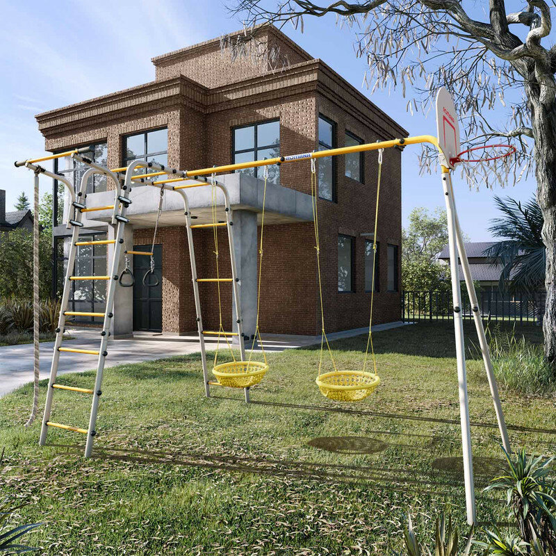 | Комплектация | кольца с перекладиной, веревочный лаз, гимнастическая лестница, рукоход, качели цепные |