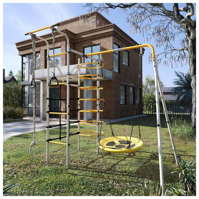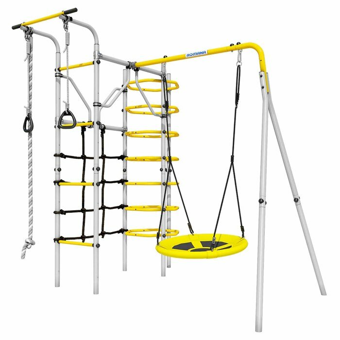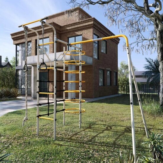 | В комплекте | гимнастические кольца, канат, сетка для лазания, турник |